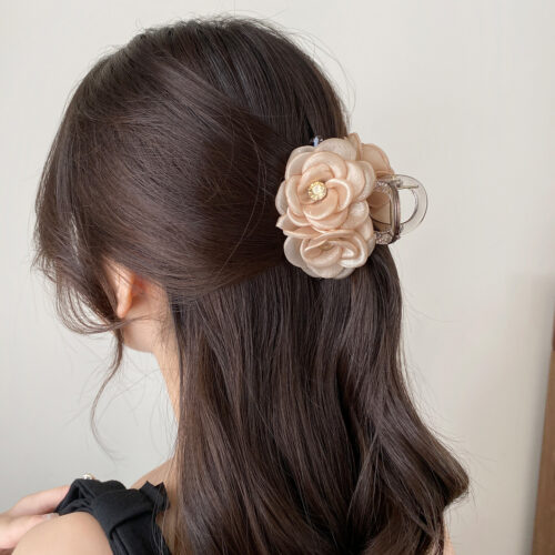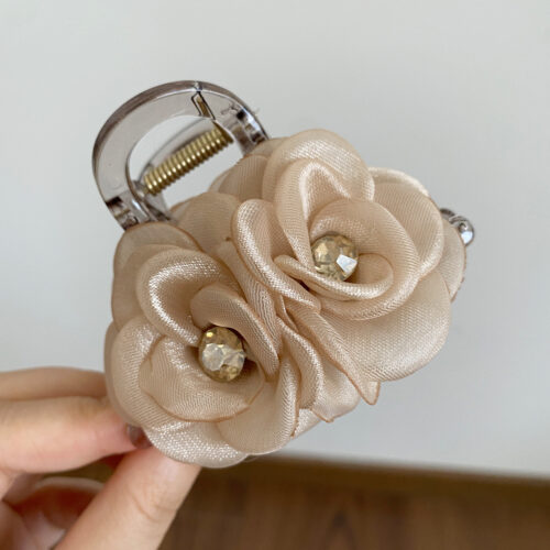 Kẹp càng cua 8cm HOA HỒNG ĐÔI màu DA thiết kế độc đáo, cao cấp, phụ kiện kẹp tóc đẹp, sang trọng, quà tặng độc đáo B3313