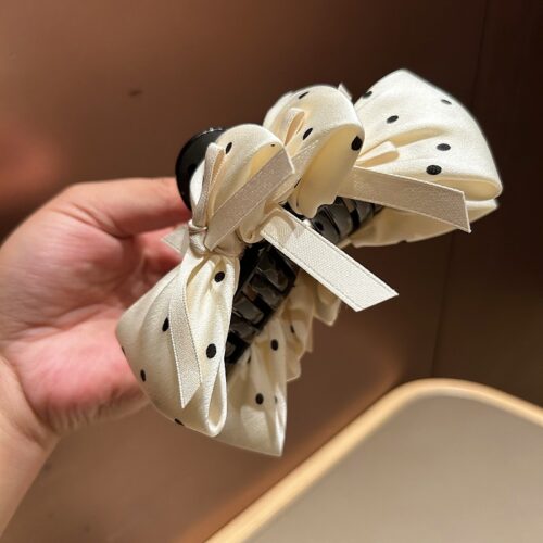 Kẹp càng cua NƠ chấm bi tone KEM cao cấp thiết kế HÀN QUỐC, phụ kiện tóc nữ đẹp B2986