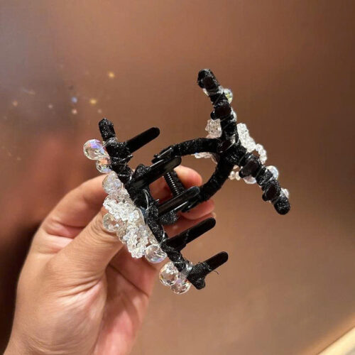 5. Kẹp gắp 8cm PHA LÊ TRẮNG lấp lánh cao cấp, phụ kiện kẹp càng cua nữ thiết kế Hàn Quốc cao cấp B4011