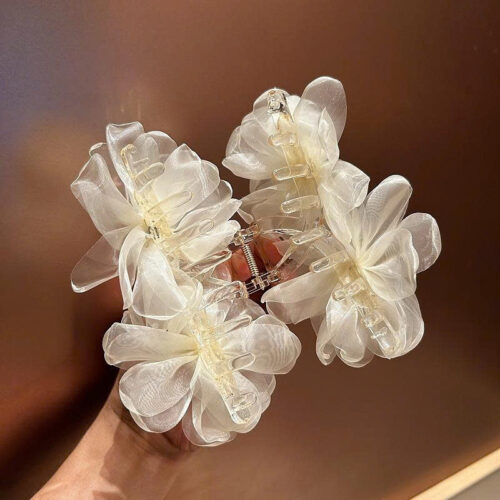 Kẹp gắp HOA voan bồng bềnh nhụy pha lê màu KEM cao cấp, Kẹp gắp tóc nữ thiết kế Hàn quốc sang trọng, quà tặng xinh B4009