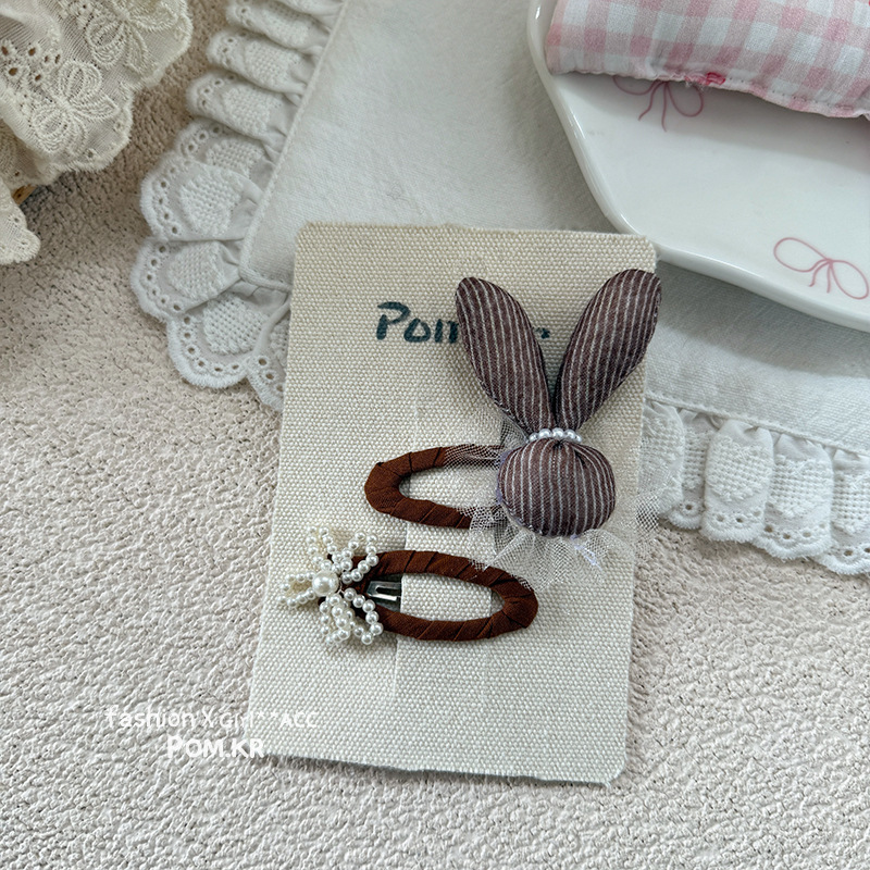 Sét 2 kẹp bấm THỎ NÂU cao cấp, kẹp tóc bé gái thiết kế HÀN QUỐC độc đáo, quà tặng cho bé gái dễ thương B4658