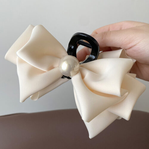 5. Kẹp gắp lớn NƠ ngọc màu KEM ngọc cao cấp, phụ kiện kẹp tóc nữ cao cấp, quà tặng bạn gái B3389