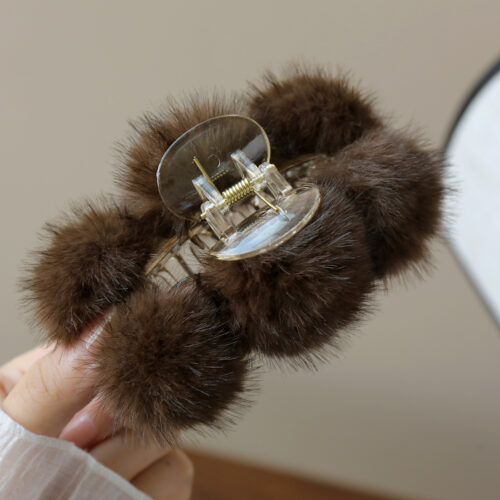Kẹp gắp lớn quả bông màu NÂU cao cấp, kẹp càng cua nữ cao cấp, kẹp tóc nữ đẹp B3364 số lượng