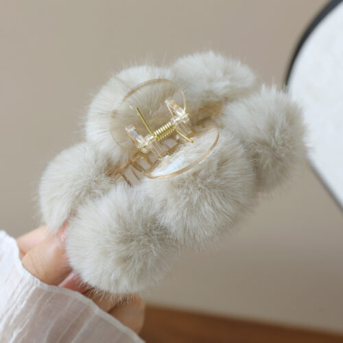 5. Kẹp gắp lớn quả bông màu XÁM chuột nhạt cao cấp, phụ kiện kẹp tóc nữ đẹp cao cấp, quà tặng độc đáo B3363