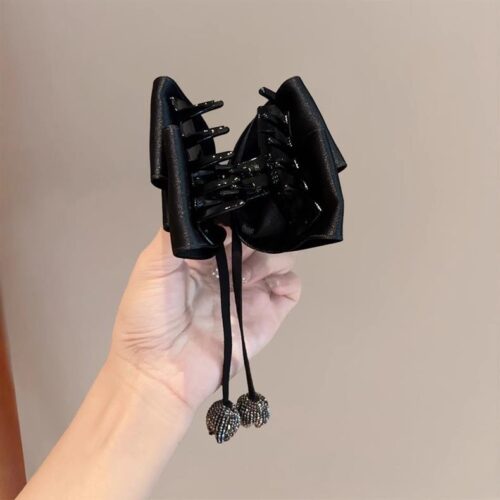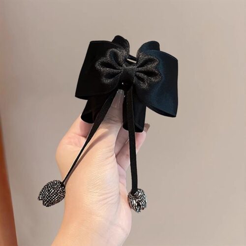 5. Kẹp gắp NƠ ĐEN TUA RUA, phụ kiện kẹp tóc nữ đẹp tiểu thư độc đáo B3213