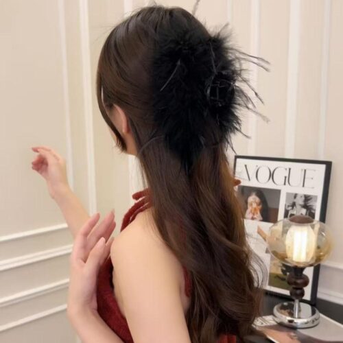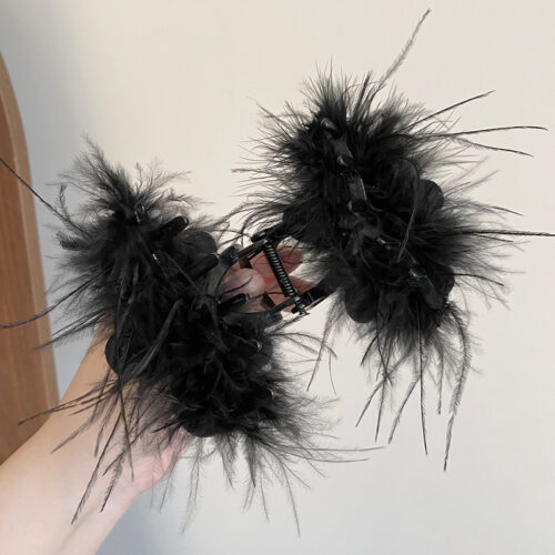 Kẹp gắp tóc lớn LÔNG vũ ĐEN , phụ kiện kẹp tóc đẹp độc đáo B3349