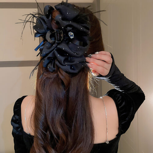 5. Kẹp gắp tóc lớn NƠ Nhụy ĐÁ cao cấp ĐEN ánh láp lánh, phụ kiệp kẹp tóc nữ độc đáo B3518