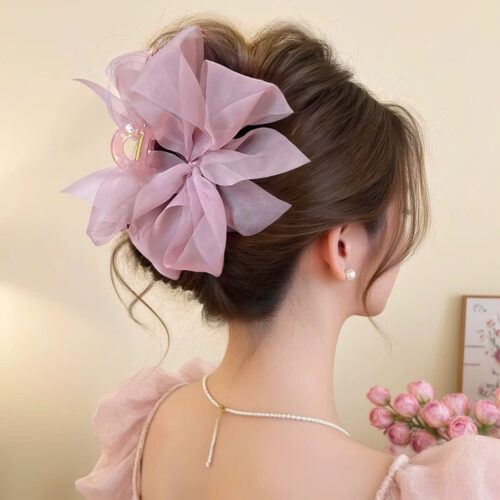 Kẹp gắp tóc NƠ voan HỒNG TÍM mịn B2787