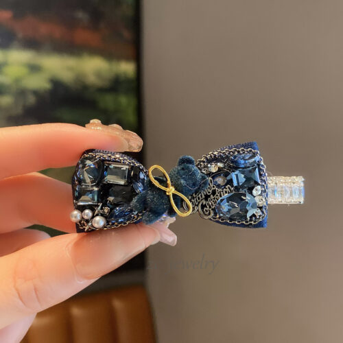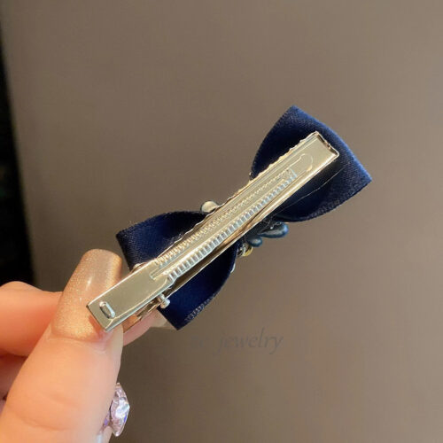 5. Kẹp mái tóc nữ dạng mỏ vịt NƠ ĐÁ tone XANH ĐEN độc đáo thiết kế Hàn Quốc cao cấp sang trọng, quà tặng ý nghĩa B4123