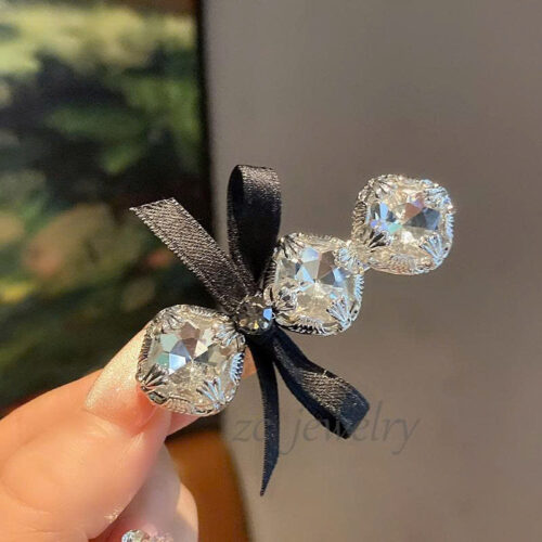 Kẹp mỏ vịt ĐÁ nơ đen cao cấp, phụ kiện kẹp mái nữ thiết kế Hàn Quốc độc đáo, quà tặng bạn gái B4117
