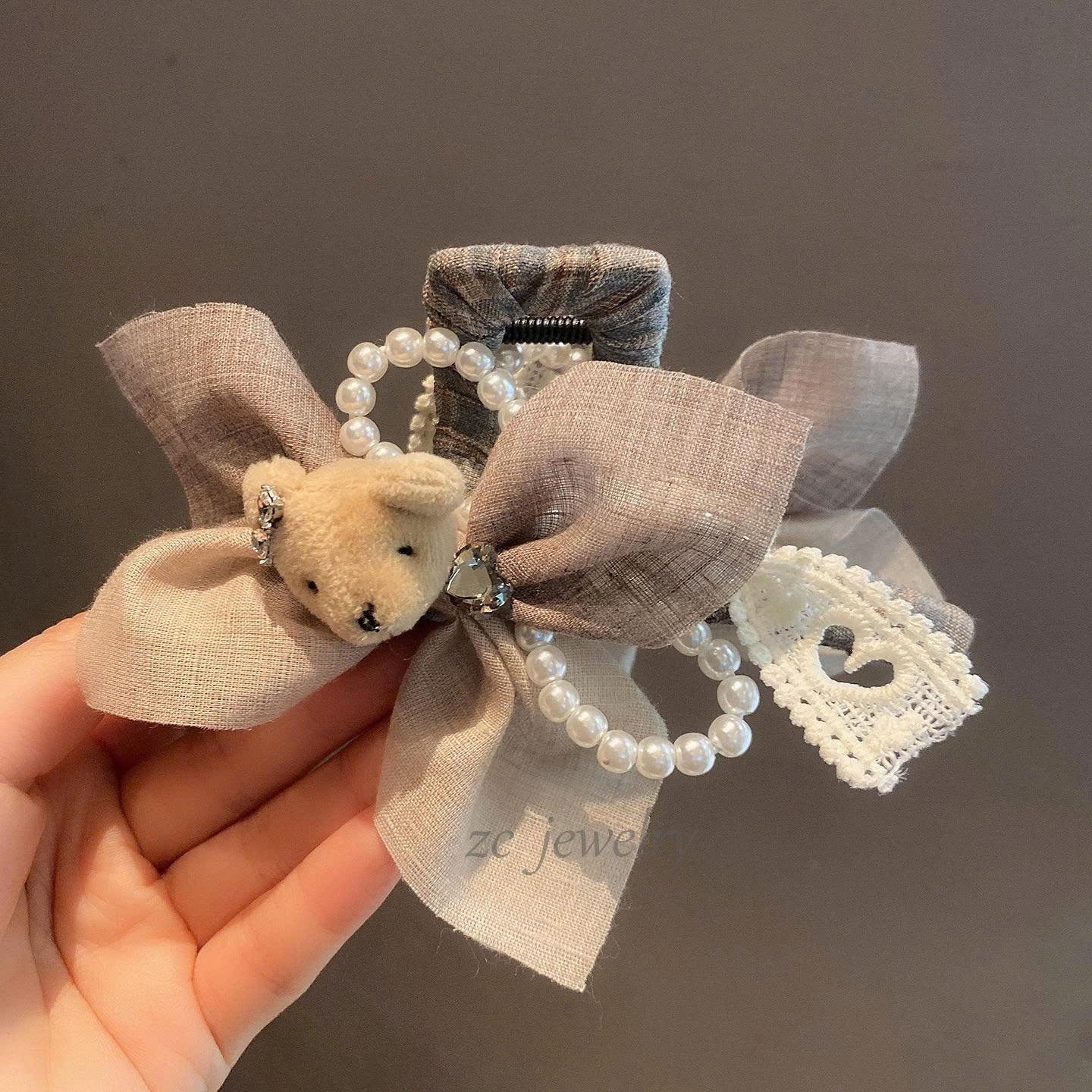 • Kẹp gắp tóc lớn NƠ trái tim GẤU toen nâu nhạt xám cao cấp, phụ kiện kẹp tóc nữ thiết kế Hàn Quốc độc đáo, quà tặng xinh ý nghĩa B4143