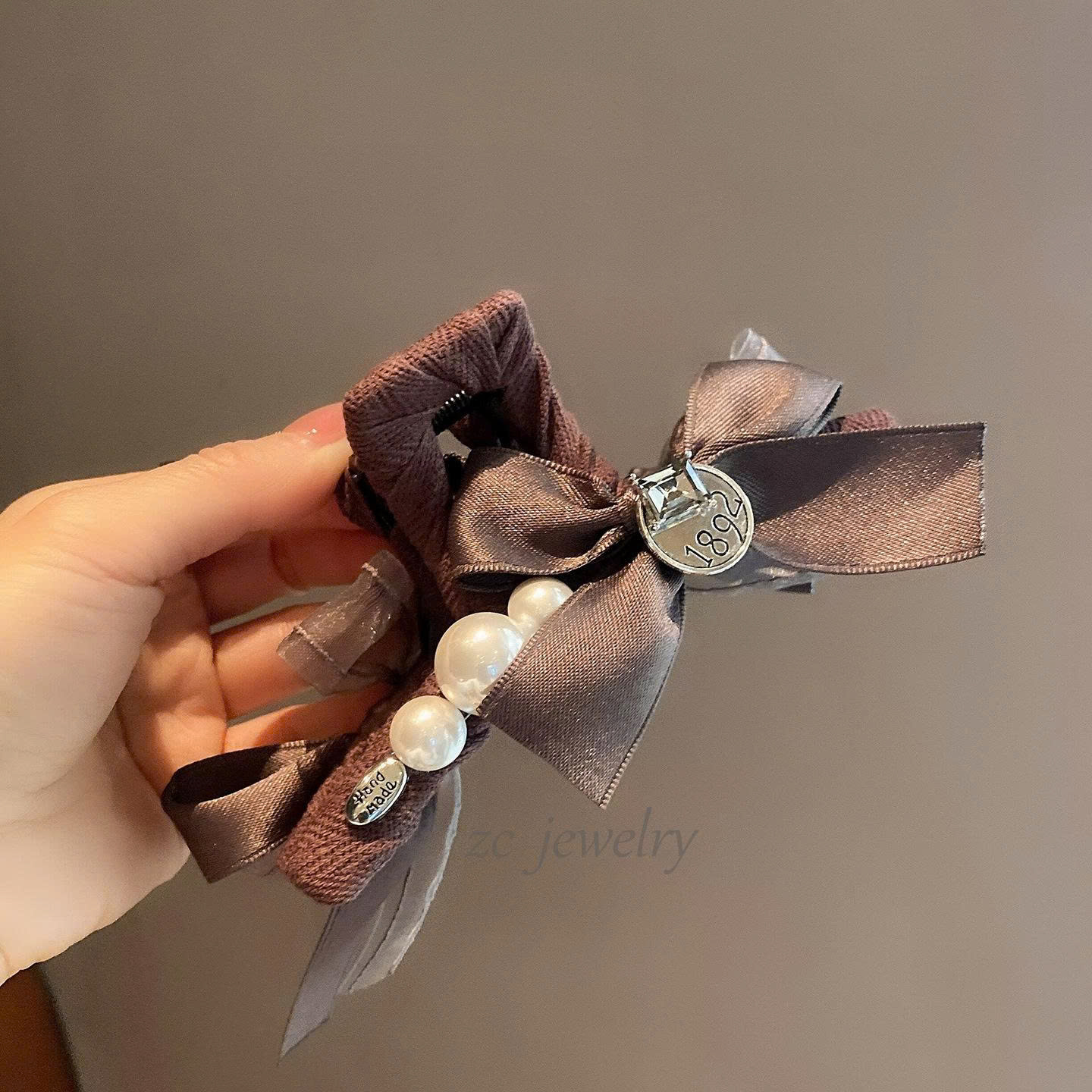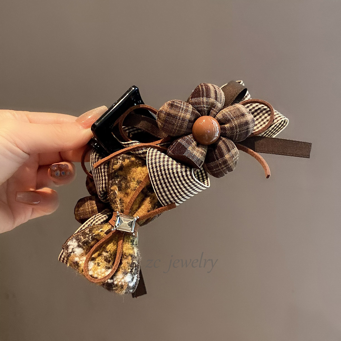 • Kẹp gắp tóc nữ thiết kế HÀN QUỐC cao cấp lớn HOA NƠ nâu caro sang trọng, phụ kiện kẹp tóc nữ ĐẸP, quà tặng bạn gái ý nghĩa B4134