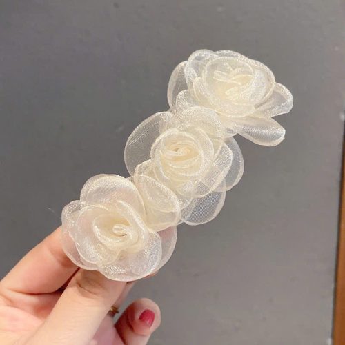 Kẹp bấm 3 hoa voan KEM xinh đẹp tiểu thư thiết kế độc đáo B2049