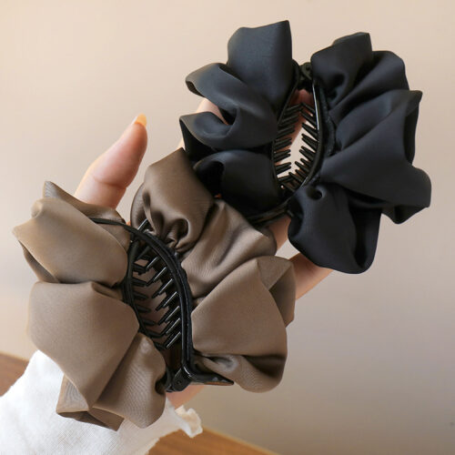Kẹp tóc 3 răng lụa NÂU xếp ly cao cấp, phụ kiện kẹp tóc nữ XINH, quà tặng mẹ B3394