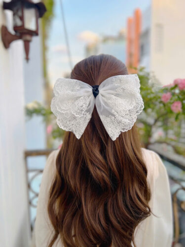 Kẹp tóc bấm NƠ REN TRẮNG B2911