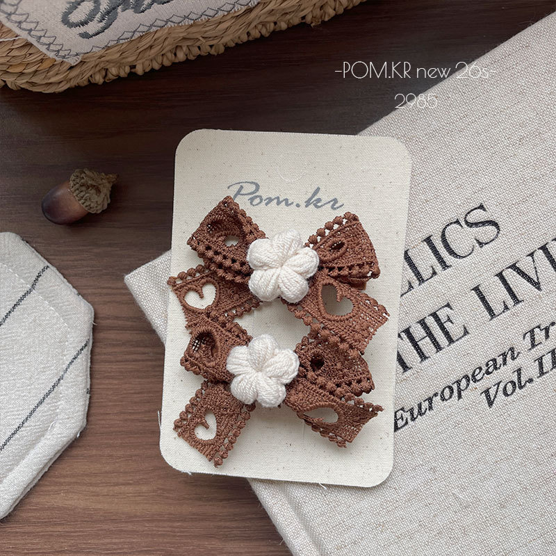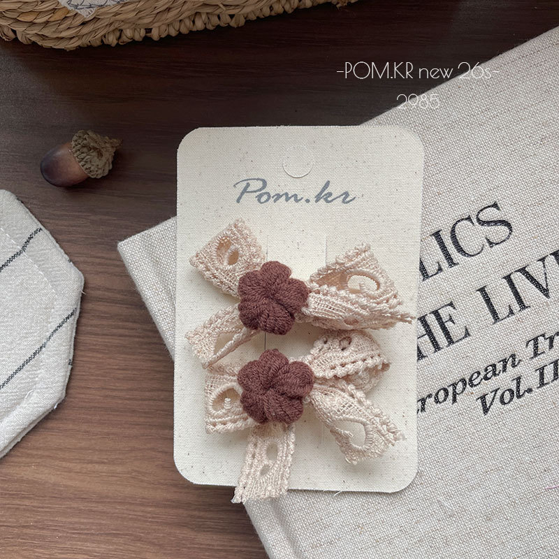 Sét 2 kẹp NƠ REN nhụy HOA NÂU cao cấp thiết kế HÀN QUỐC dễ thương cao cấp, Quà tặng cho bé, kẹp tóc cho bé B4595
