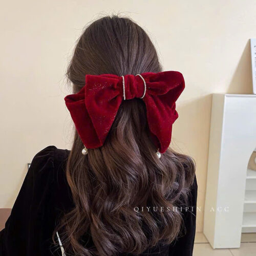 Kẹp tóc nhung cao cấp nơ tầng giotn ngọc độc đáo tiểu thư AK3513 số lượng