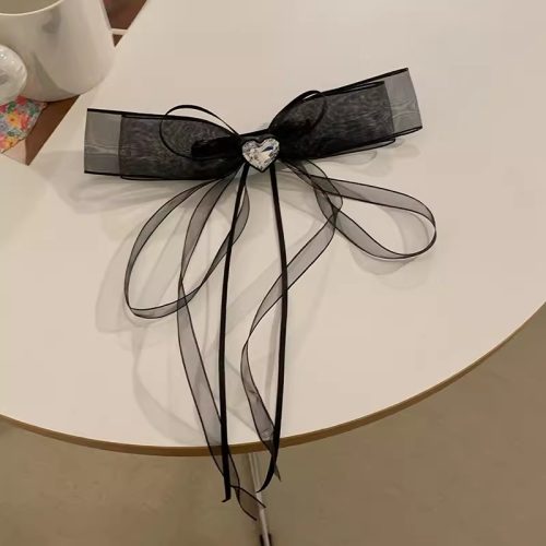 Kẹp tóc nơ voan màu ĐEN nhụy đá trái tim, phụ kiện kẹp tóc nữ đẹp B2142