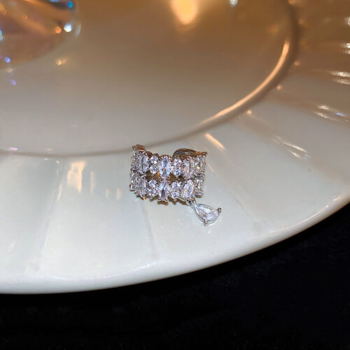 Kẹp vành tai 1 bên ĐÁ zircon GIỌT NƯỚC cao cấp màu BẠC B2580
