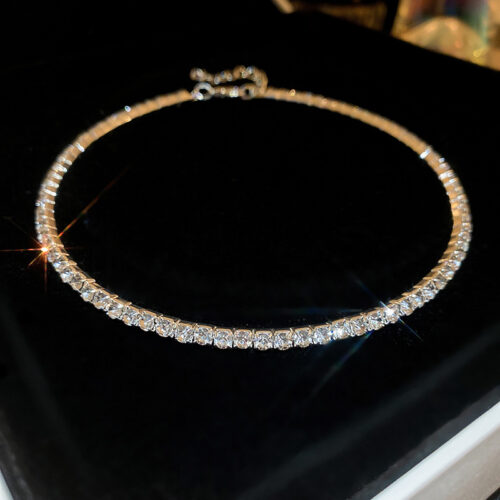 Kiềng cổ full đá màu bạc thời trang, phụ kiện vòng cổ, dây chuyền đi tiệc độc đáo B3538