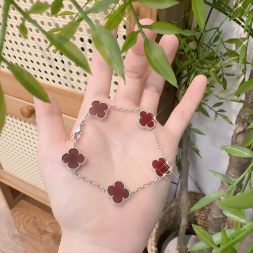 Lắc tay cỏ 4 lá cao cấp mã vip đá mã não B02885