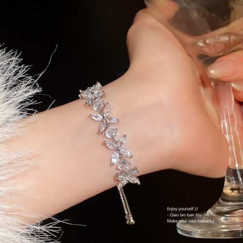 Lắc tay cỏ 4 lá đá zircon rút freesize thiết kế màu bạc cao cấp B1991 số lượng