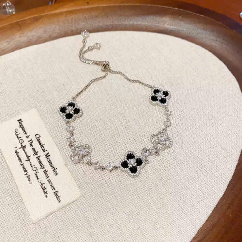 Lắc tay cỏ 4 lá ĐÁ ZIRCON xi bạc 925 cao cấp freesize, lắc tay nữ đẹp độc đáo, quà tặng bạn gái B3586 số lượng
