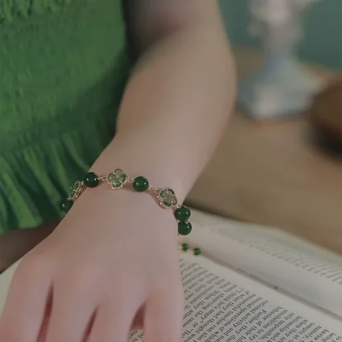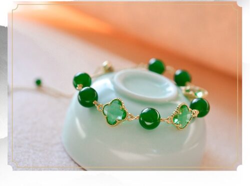 Lắc tay Cỏ Bốn Lá chalcedony xanh rút FREESIZE B2891 số lượng