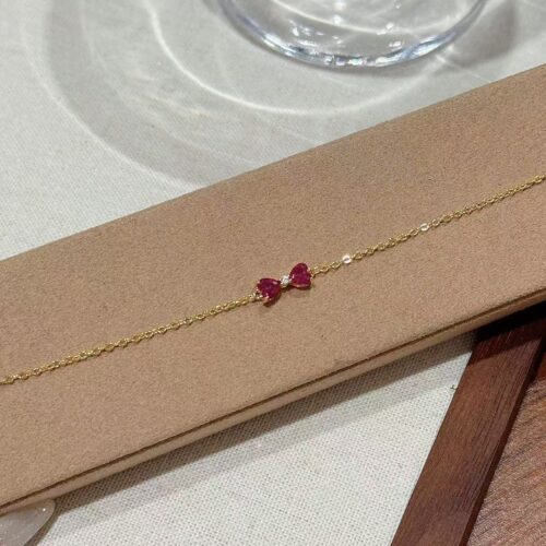 Lắc Tay NƠ ĐÁ zircon màu HỒNG ĐẬM cao cấp xi vàng pha, phụ kiện lắc tay nữ thiết kế HÀN QUỐC, quà tặng bạn gái B3704