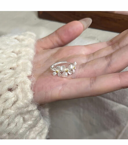 5. Nhẫn HOA MAI màu bạc cao cấp freesize, nhẫn nữ thiết kế HÀN QUỐC sang trọng B3632