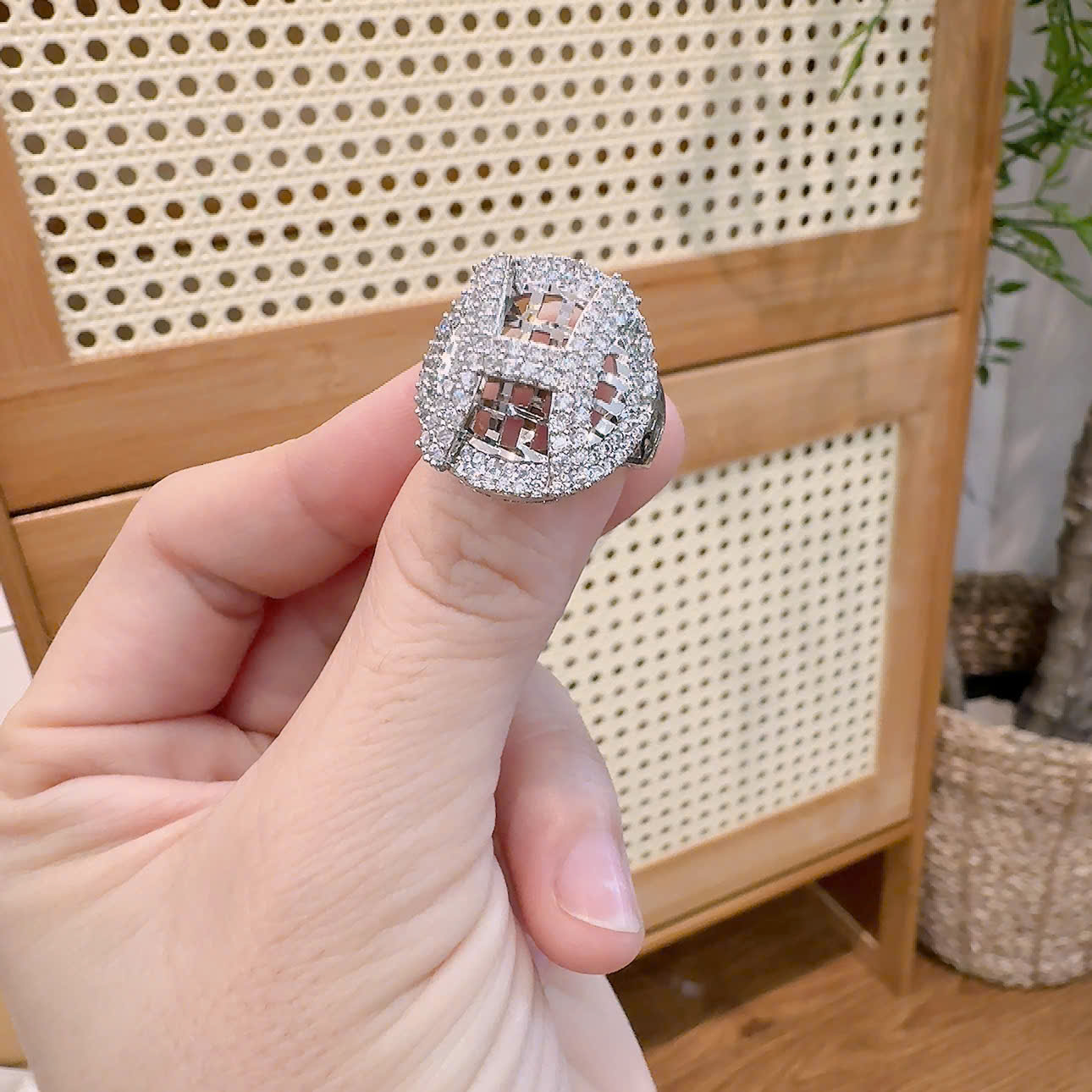 Nhẫn full đá G xi bạc pha cao cấp size 16mm AN2659