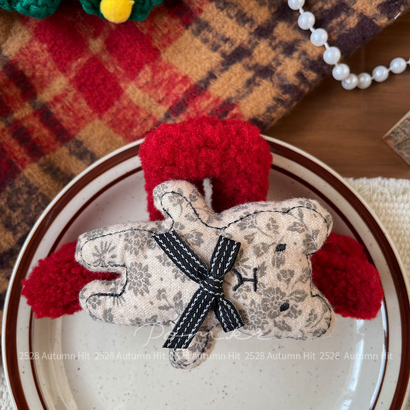 Kẹp gắp lớn 13cm GẤU NƠ HOA Tone đỏ cao cấp, phụ kiện kẹp tóc nữ thiết kế HÀN QUỐC, quà tặng bạn gái B4717