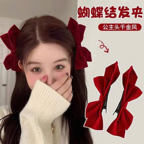 Sét 2 kẹp tóc NƠ ĐỎ NHUNG B2916 số lượng