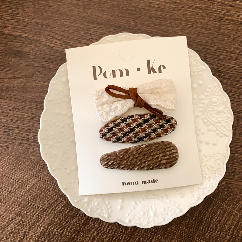 Sét 3 kẹp bấm hình học giọt nước NÂU caro màu sắc rực rỡ thiết kế HÀN QUỐC cao cấp, kẹp tóc cho bé, quà tặng đáng yêu cho bé B4633