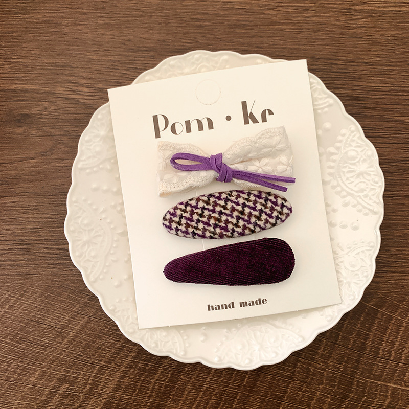 Sét 3 kẹp bấm hình học giọt nước TÍM caro màu sắc rực rỡ thiết kế HÀN QUỐC cao cấp, kẹp tóc cho bé, quà tặng đáng yêu cho bé B4634