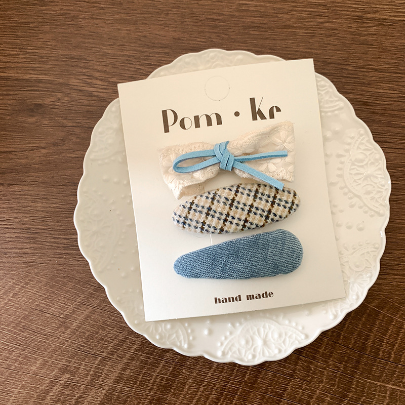 Sét 3 kẹp bấm hình học giọt nước XANH DA TRỜI caro màu sắc rực rỡ thiết kế HÀN QUỐC cao cấp, kẹp tóc cho bé, quà tặng đáng yêu cho bé B4677