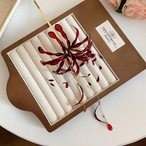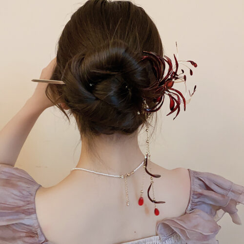 Trâm cài tóc cô dâu ĐỎ hoa BỊ NGẠN cao cấp, phụ kiện trâm tóc cổ trang áo dài, phụ kiện tóc độc đáo B3514 số lượng