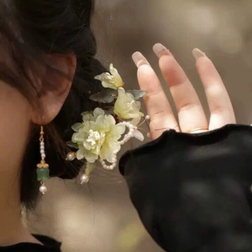 Trâm tóc chữ U hoa XANH lá ngọc sang trọng, độc đáo, phụ kiện tóc nữ đẹp A0023