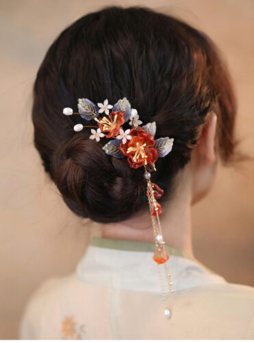 5. Trâm tóc HOA BƯỚM màu đỏ 2 bông, lượt chải tóc HOA thiết kế ĐẸP độc đáo, Phụ kiện tóc cô dâu, tóc bà sui B4060