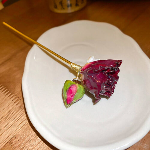 Trâm tóc NGỌC TRAI HOA HỒNG ĐỎ ĐÔ cao cấp, phụ kiện tóc nữ ĐẸP ĐỘC ĐÁO, trâm tóc áo dài B3513