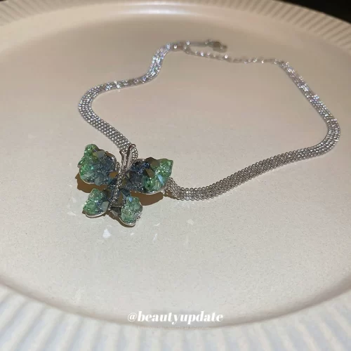 Vòng cổ, chocker hồ điệp đá xanh độc đáo, dây chuyền cá tính B1829