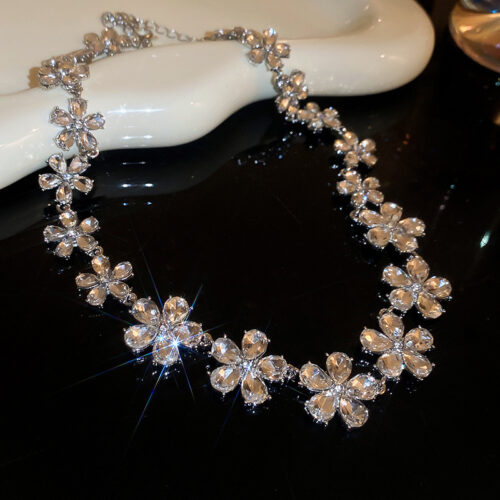 Vòng cổ chocker HOA ĐÁ xi màu bạc, dây chuyền vòng cổ thời trang đi tiệc độc đáo B3539 số lượng
