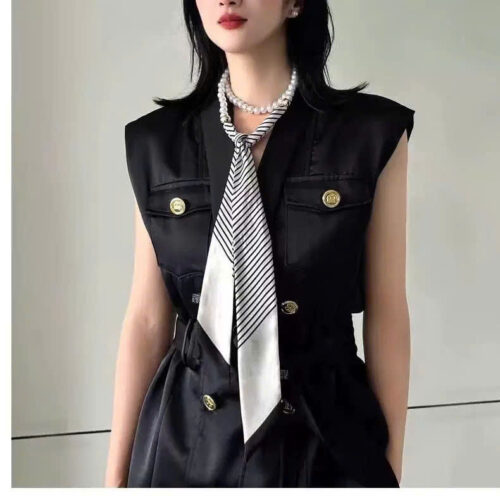 Vòng cổ chuỗi ngọc khăn lụa ĐEN KEM họa tiết mặt trăng độc đáo B3156