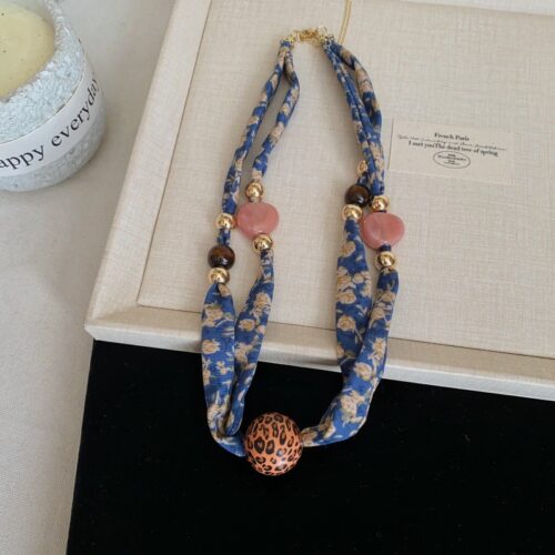 Vòng cổ, dây chuyền VẢI hạt Gỗ họa tiết xanh, phụ kiện vòng cổ độc đáo, đẹp B3182