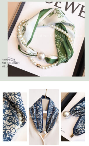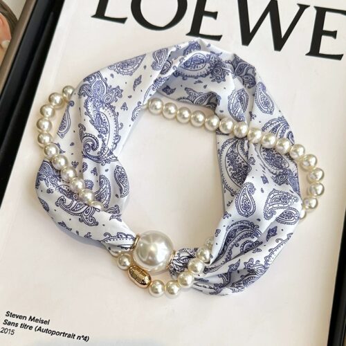 Vòng cổ khăn lụa đa năng ngọc trai độc đáo Tone họa tiết, phụ kiện vòng cổ đẹp B3225
