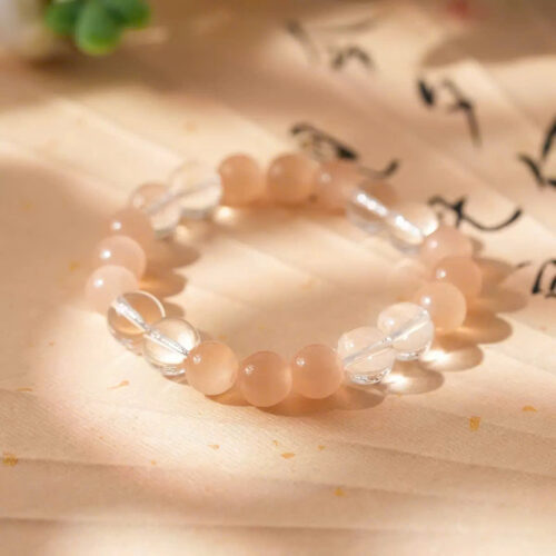 Lắc tay cỏ 4 lá đá Hồng màu vàng hồng độc đáo B2954