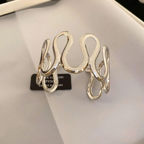 Vòng tay HỞ màu BẠC sóng lên xuống, vòng tay cá tính bản to, phụ kiện vòng tay thời trang độc đáo phong cách B4821